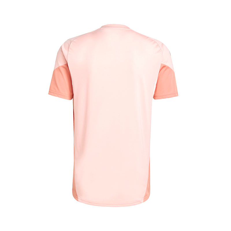 Salmon-colored kids' training T-shirt with blue details on the shoulders and the Sevilla FC crest in blue on the chest, part of the Official Sevilla Football Club Training Collection for the 25/26 season.