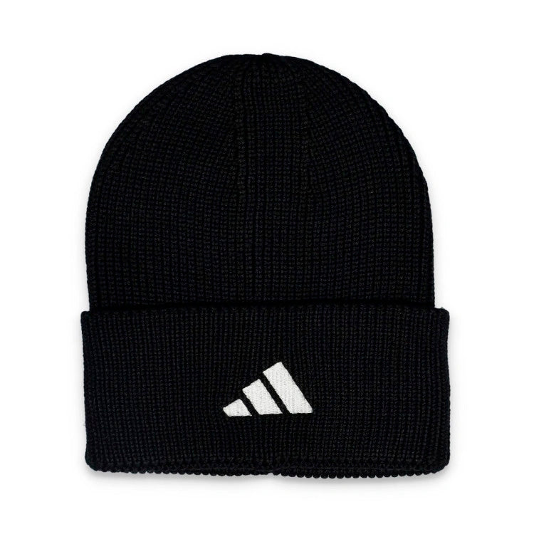 Gorro de punto suave con puño doblado. Detalle bordado en la parte delantera en color blanco.