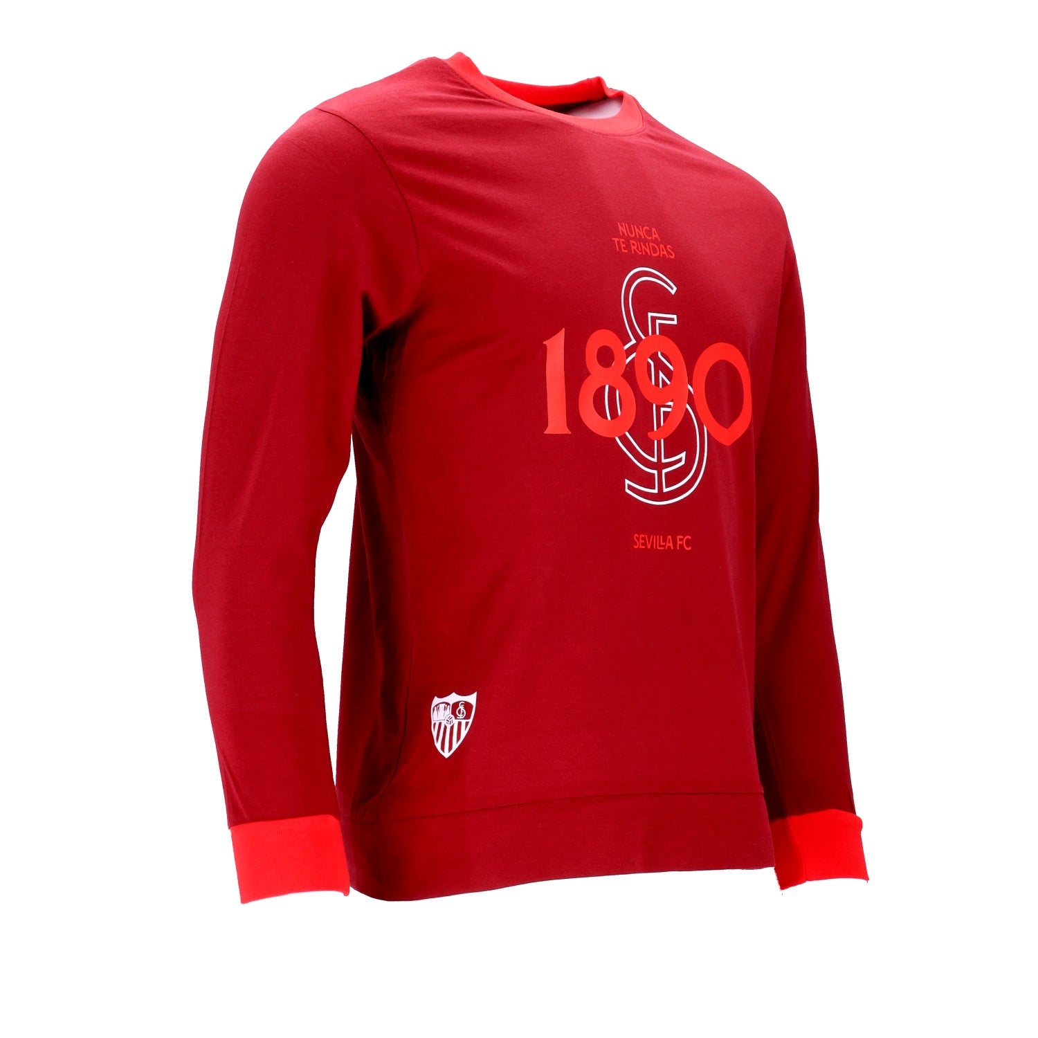 Disfruta del máximo confort y demuestra tu pasión por el Sevilla FC con este pijama de invierno en rojo y blanco. Con el escudo y el nombre del club en el pecho, te mantendrás abrigado y lucirás tu orgullo sevillista incluso en las noches más frías.