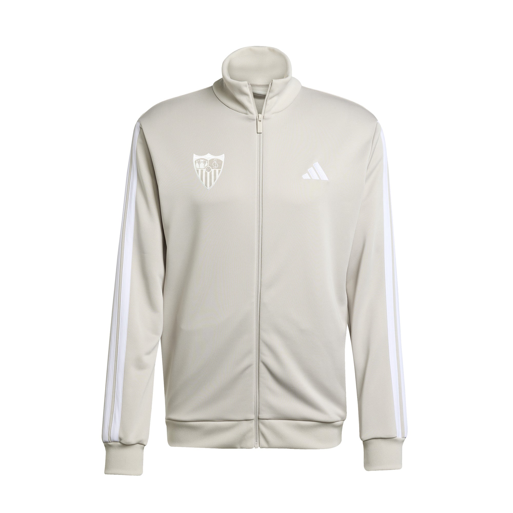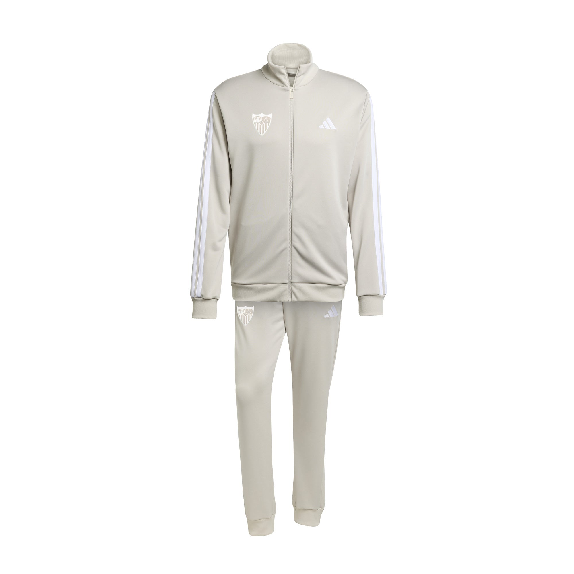 Este chándal de entrenamiento para adultos, tiene un diseño especial con detalles en los hombros y con el escudo del Sevilla FC en color blanco serigrafiado sobre el pecho.