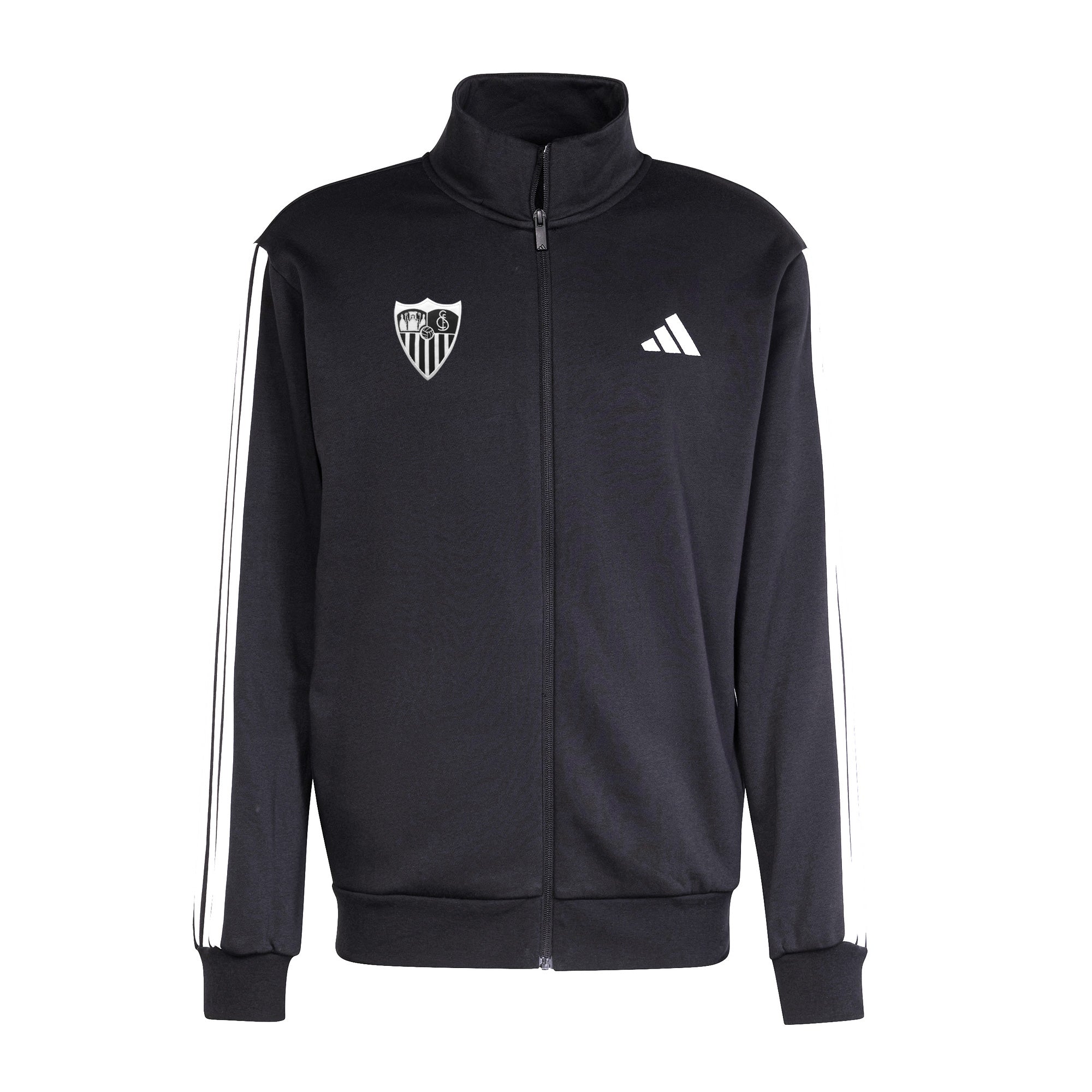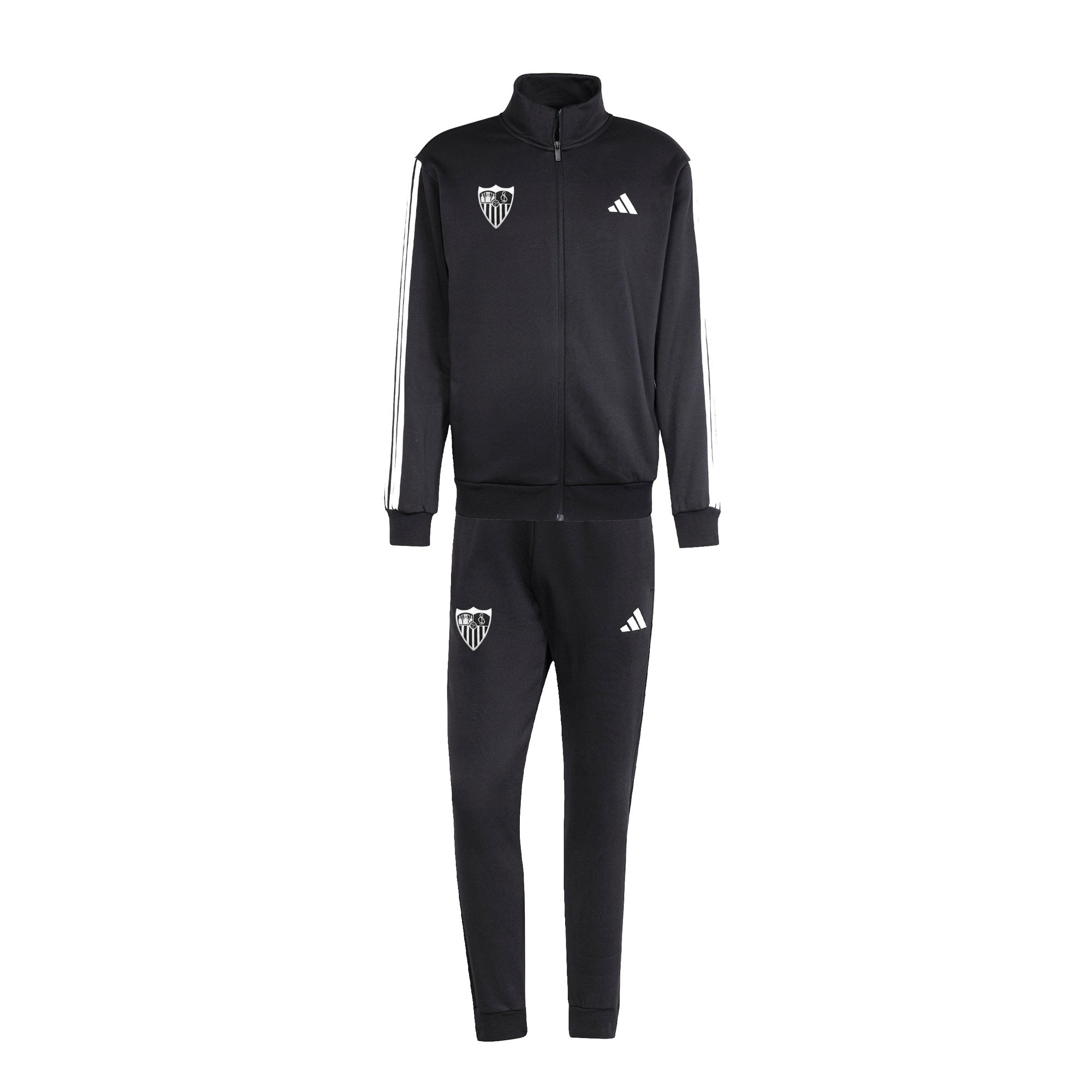 Este chándal de entrenamiento para adultos, tiene un diseño especial con detalles en los hombros y con el escudo del Sevilla FC en color blanco serigrafiado sobre el pecho.