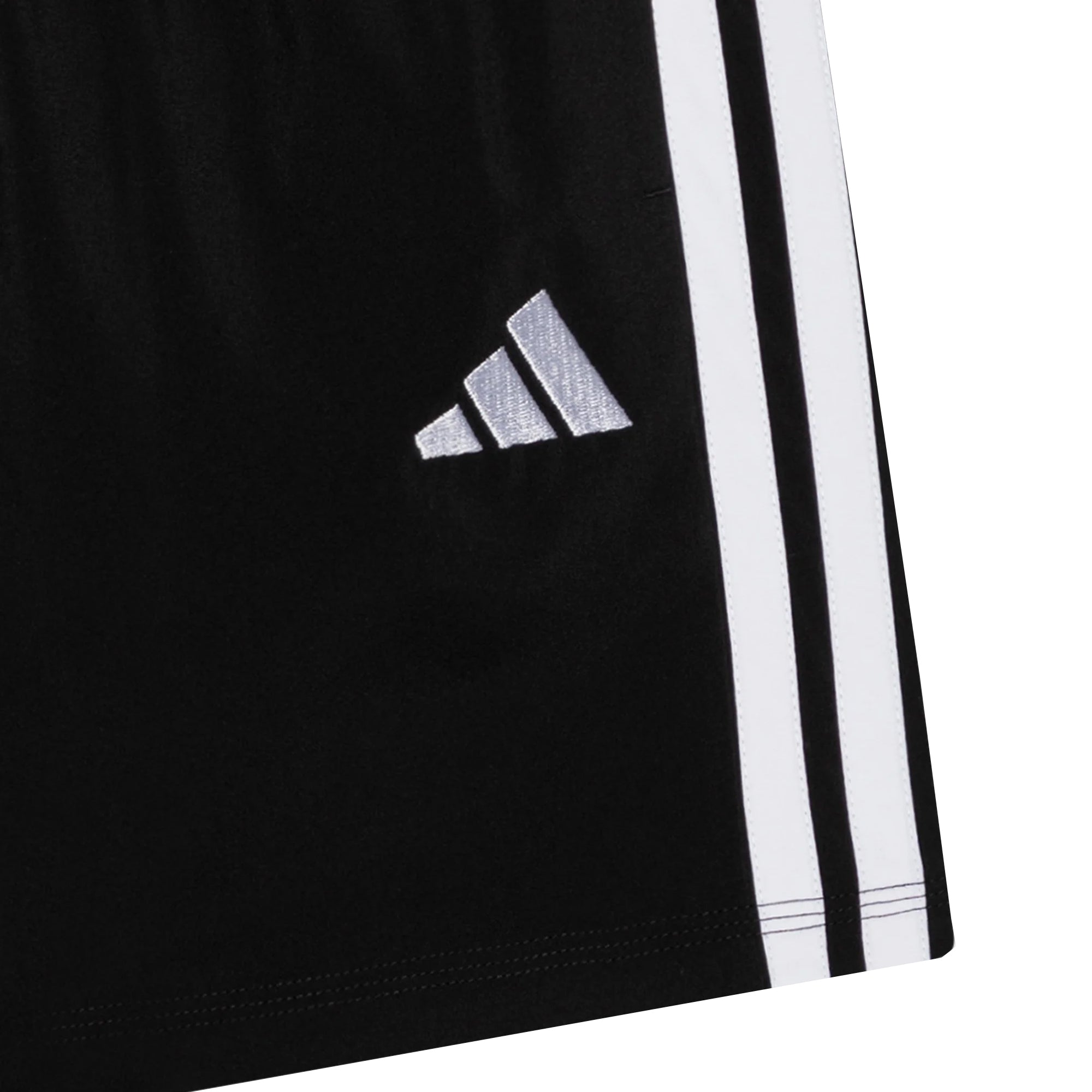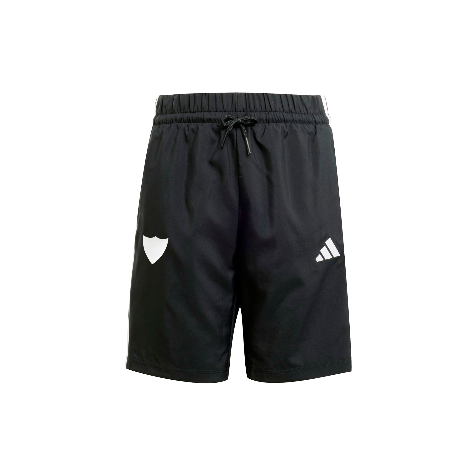 Shorts negros para niños ideal para deporte o uso casual. Cintura elástica con cordón ajustable para un ajuste cómodo, material: 100 % poliéster reciclado, con detalles laterales blancos y escudo del Club en blanco, pertenecientes a la Colección Oficial de Entrenamiento de la Temporada 25/26.