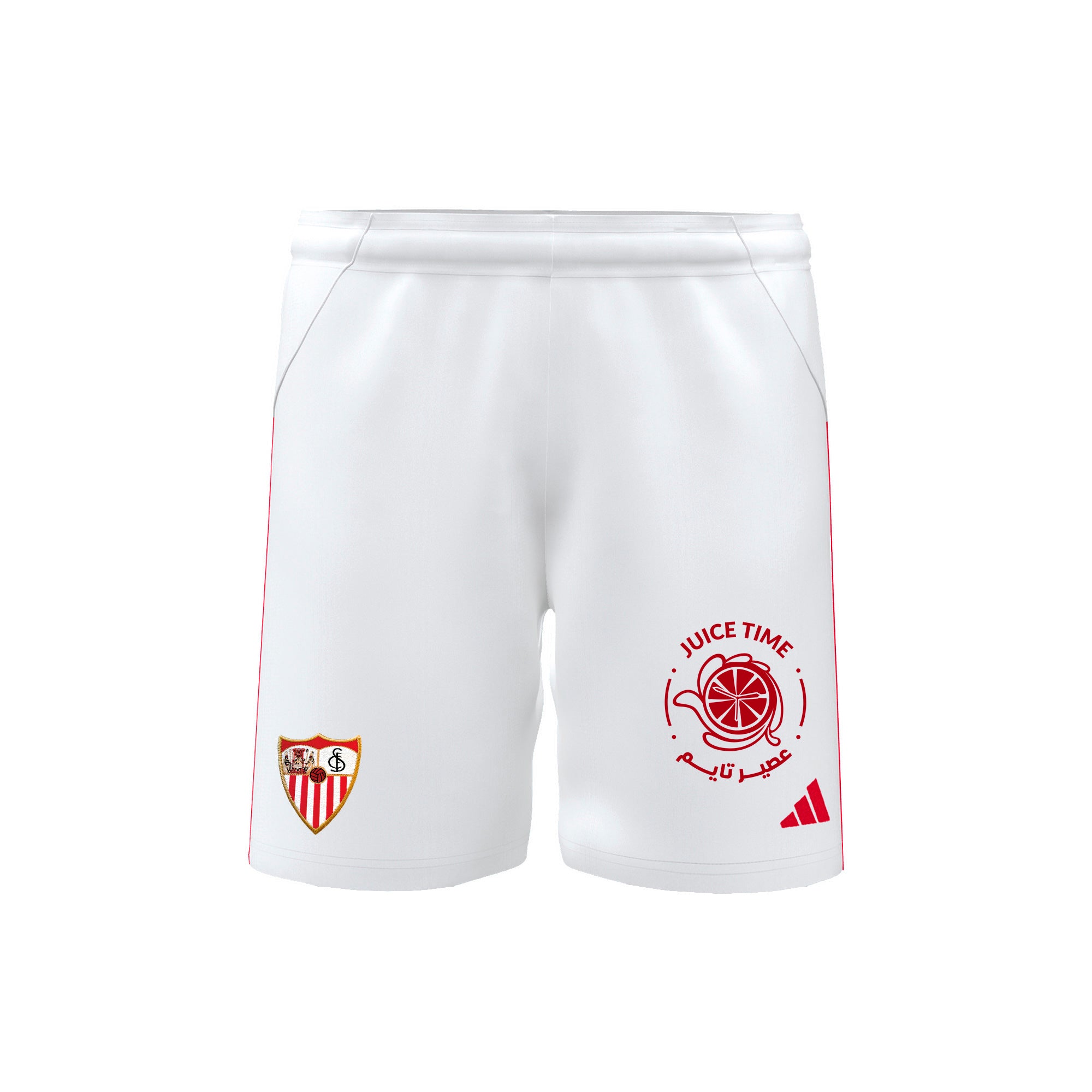 Completa tu primera equipación oficial del Sevilla Fútbol Club para la temporada 25/26 con los shorts blancos para adultos con escudo a todo color que utilizan los jugadores del equipo cuando juegan en casa, en el estadio Ramón Sánchez-Pizjuán. Con patrocinador.