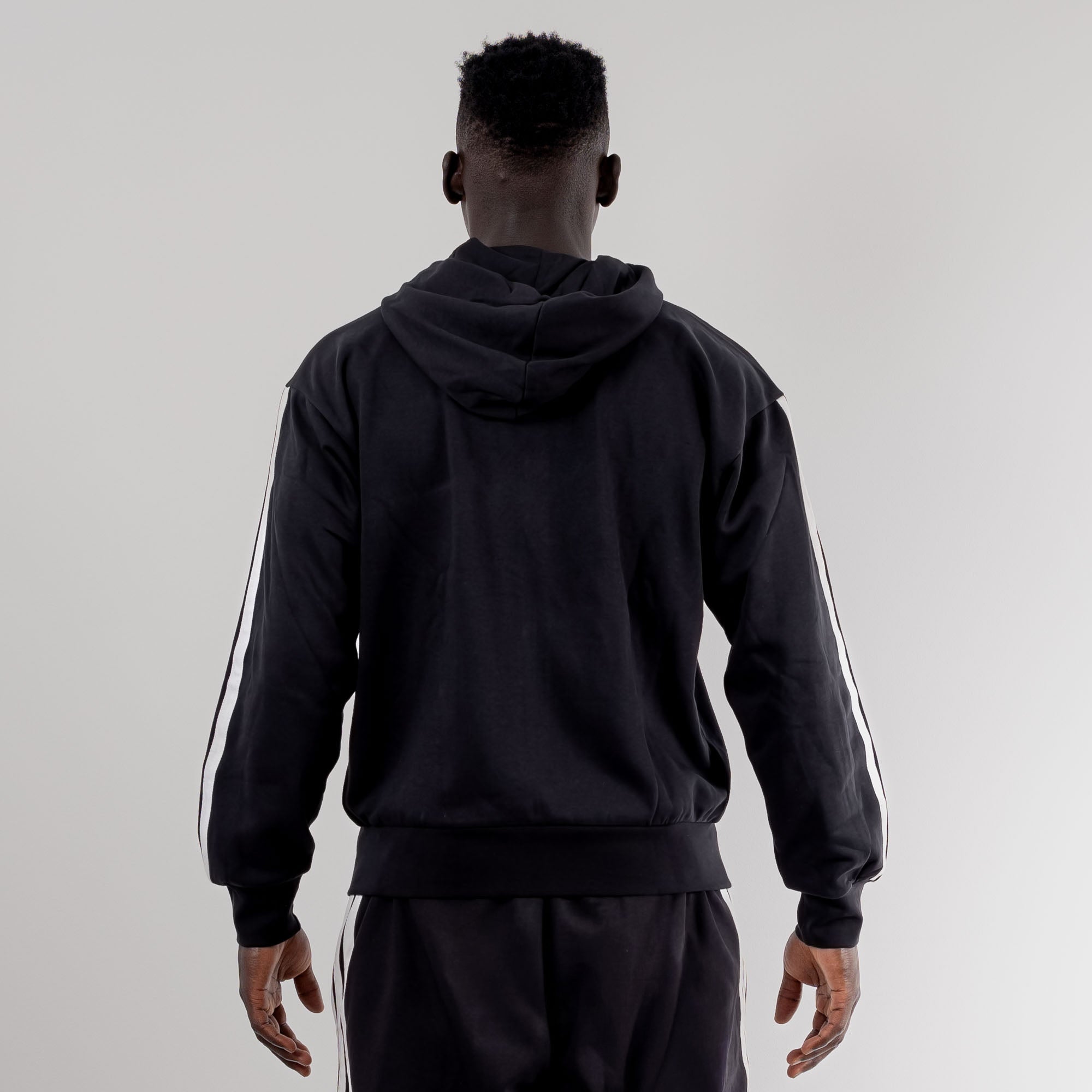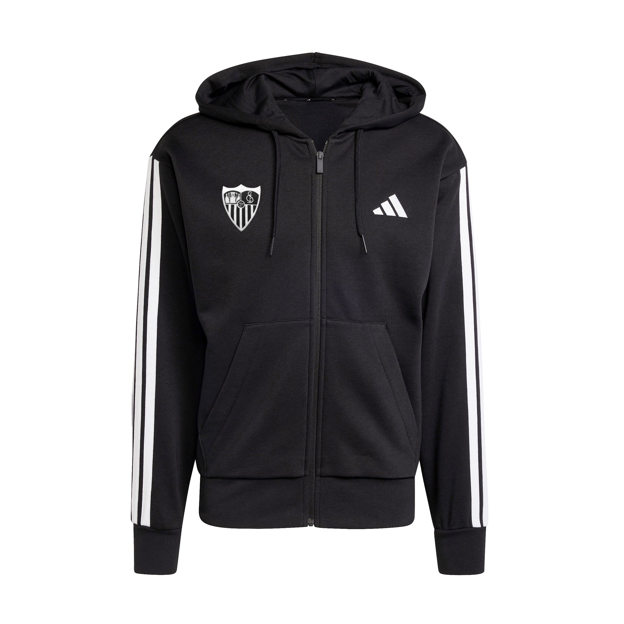 La sudadera negra para adultos, con capucha y bolsillos de canguro de la Colección Oficial del Sevilla Fútbol Club para la temporada 25/26. Lúcela en ocasiones casual con su elegante diseño con detalles laterales, sponsor técnico y escudo serigrafiados en blanco en el pecho.