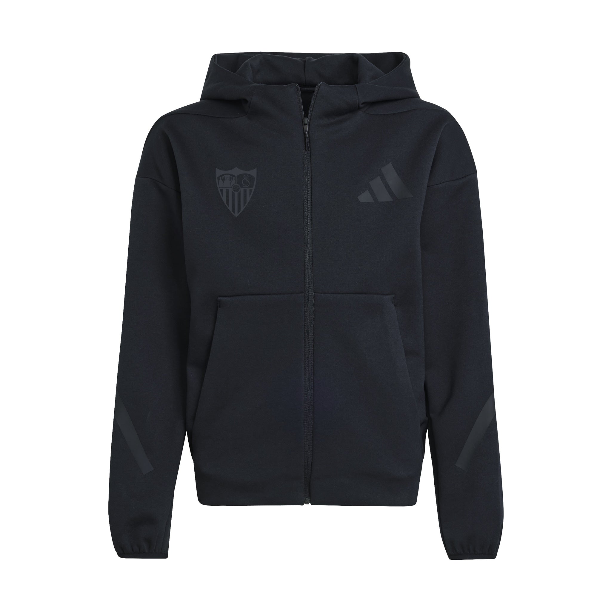 La sudadera morada para niños, chaqueta con capucha y cremallera completa , de la Colección Oficial del Sevilla Fútbol Club para la temporada 25/26.